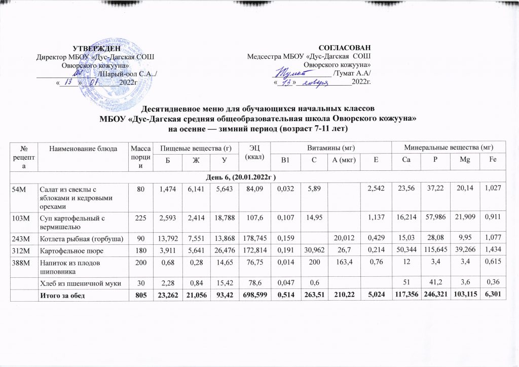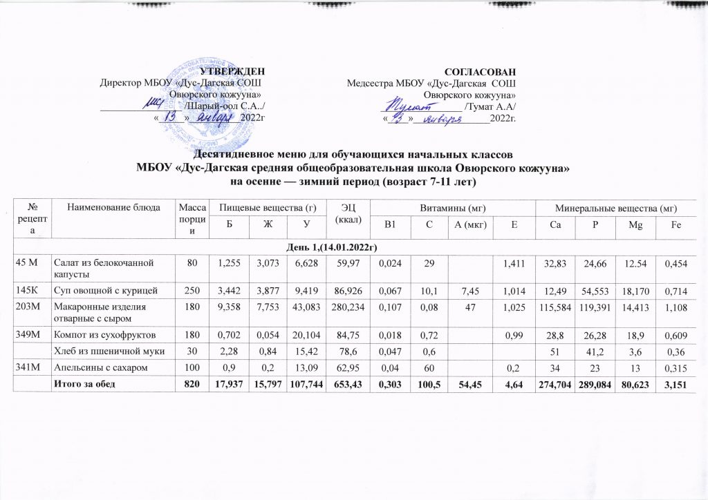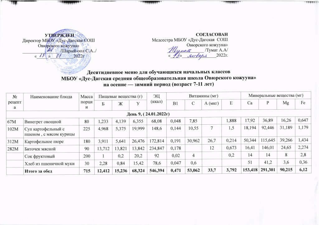Двенадцатидневное меню за декабрь месяц 2024 год