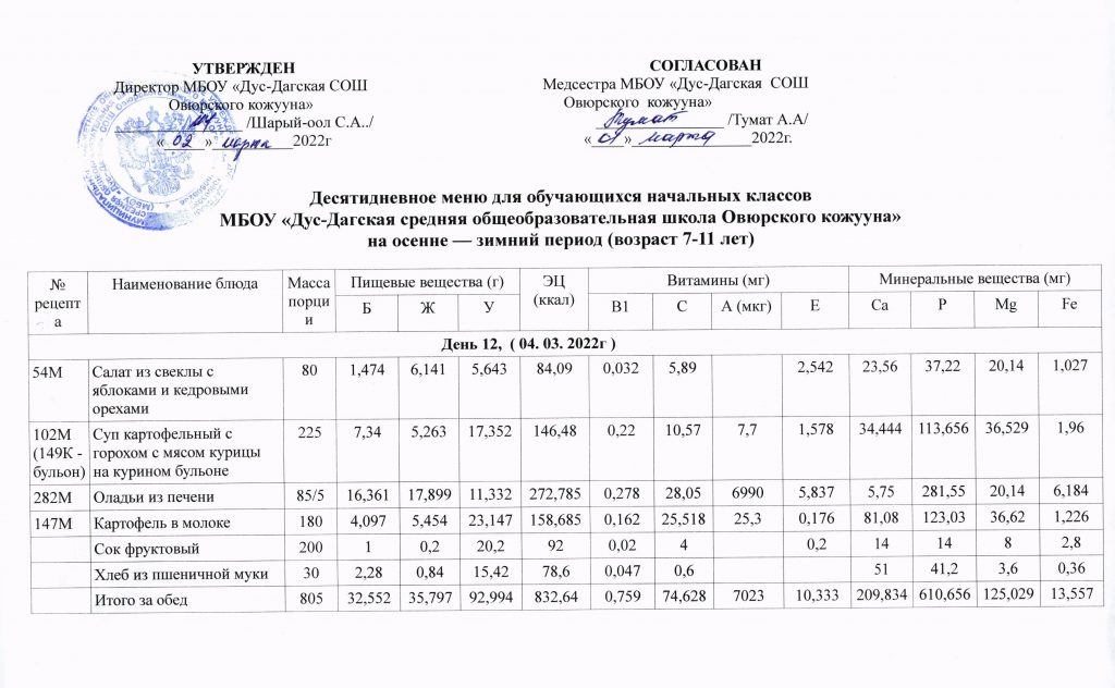 Двенадцатидневное меню за декабрь месяц 2024 год