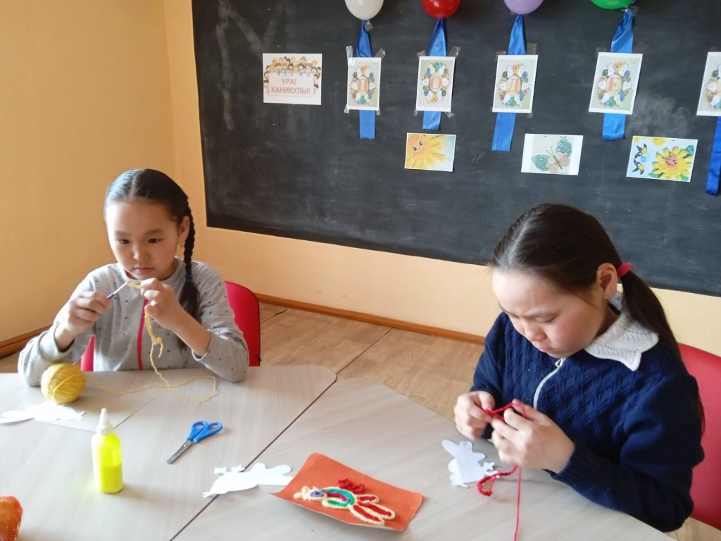 По каникулярному плану проведена игра по станциям «Детские веселые поделки». Вязание — вид рукоделия очень полезный для развития мелкой моторики рук. Рукоделие учит детей терпению, трудолюбию.Детям очень понравилось мероприятие, они получили много положительных эмоций