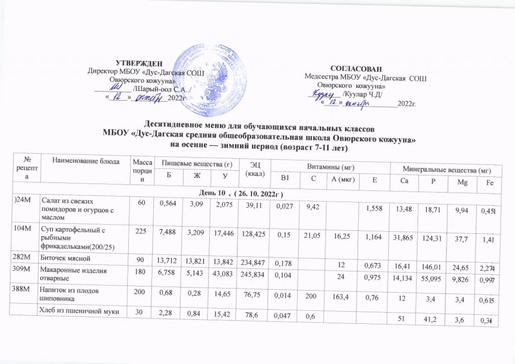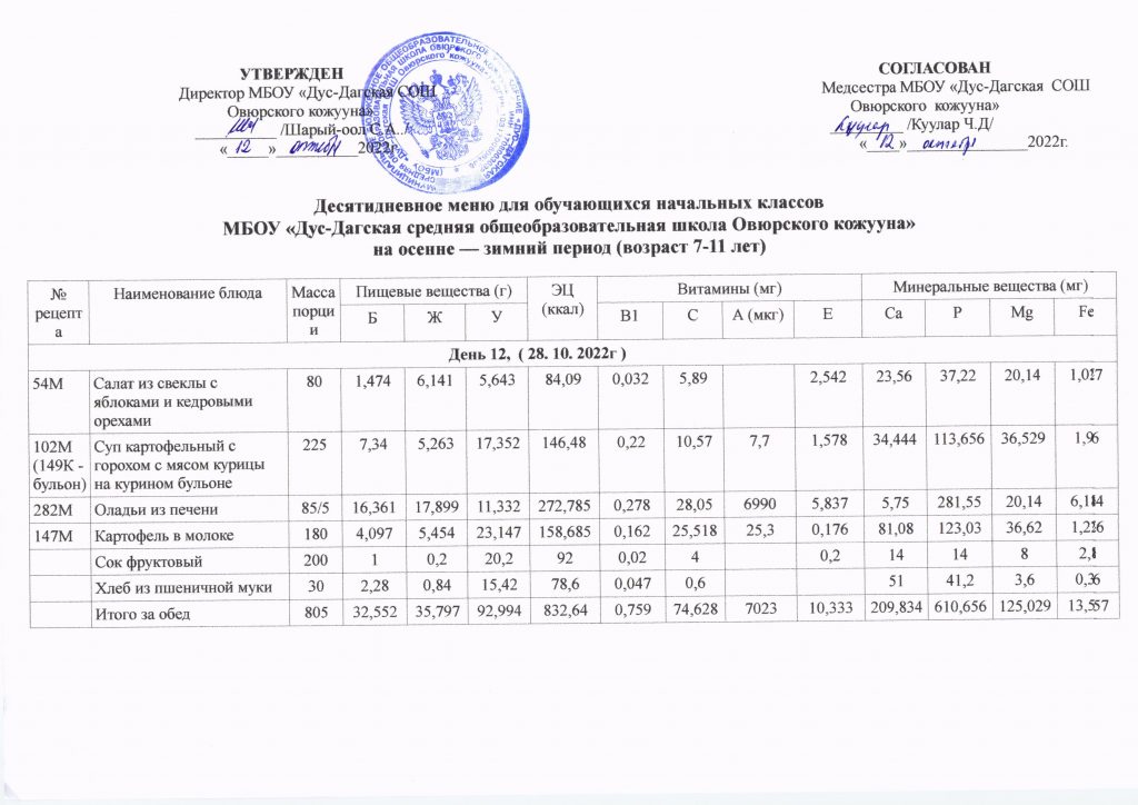 Двенадцатидневное меню за декабрь месяц 2024 год