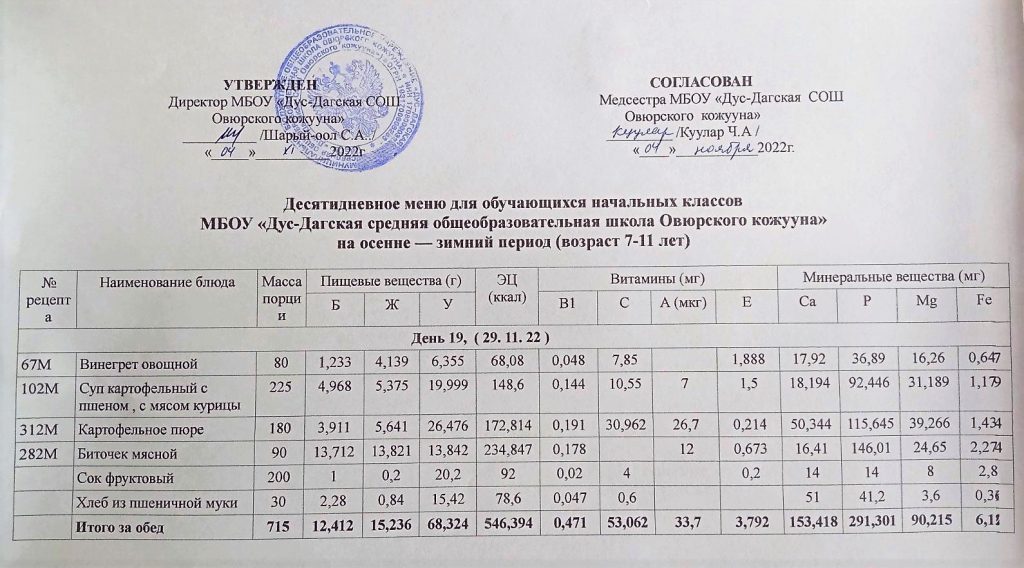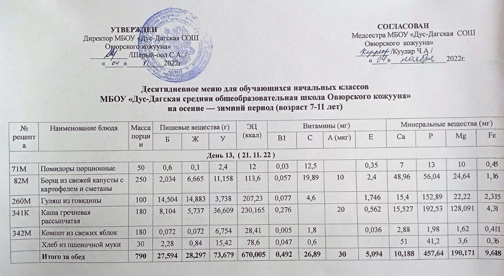 Двенадцатидневное меню за декабрь месяц 2024 год