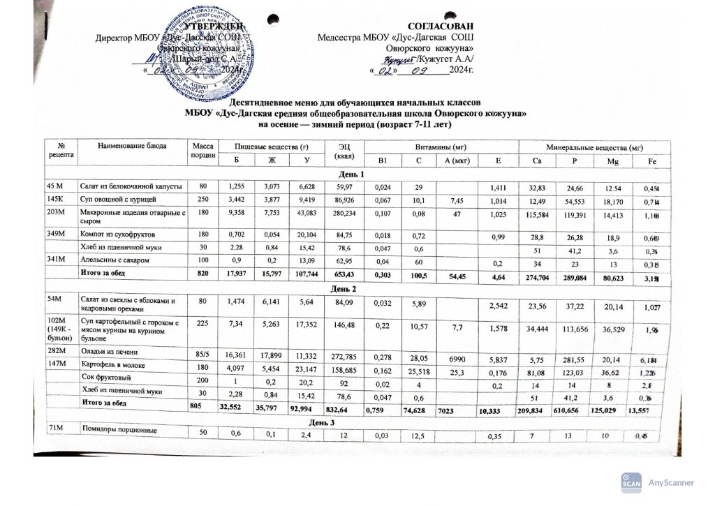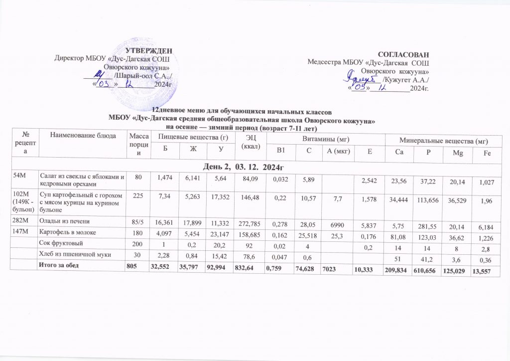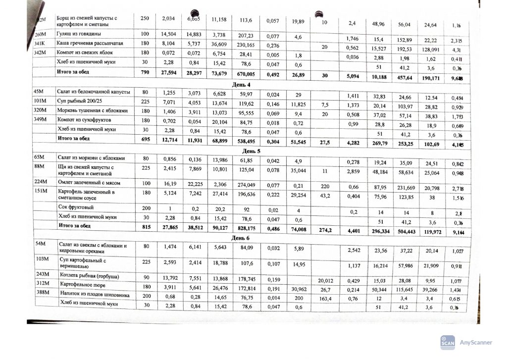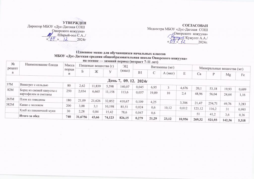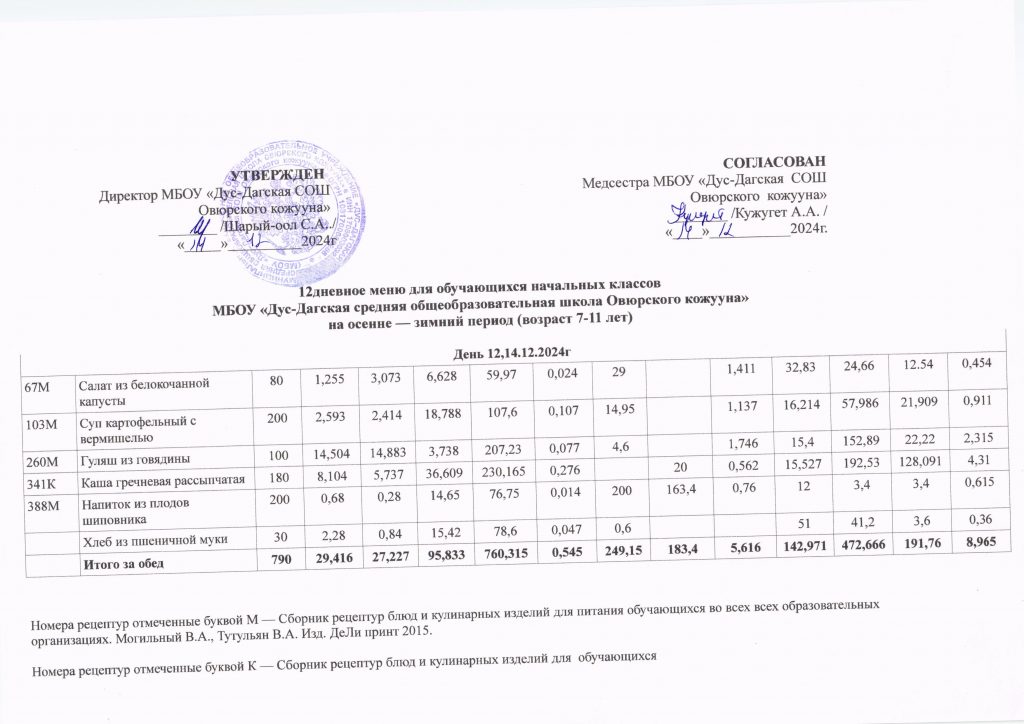 Двенадцатидневное меню за январь месяц 2025 год
