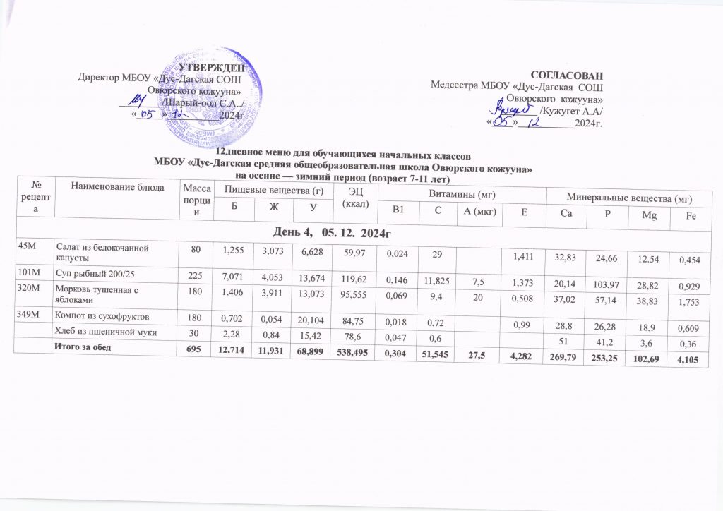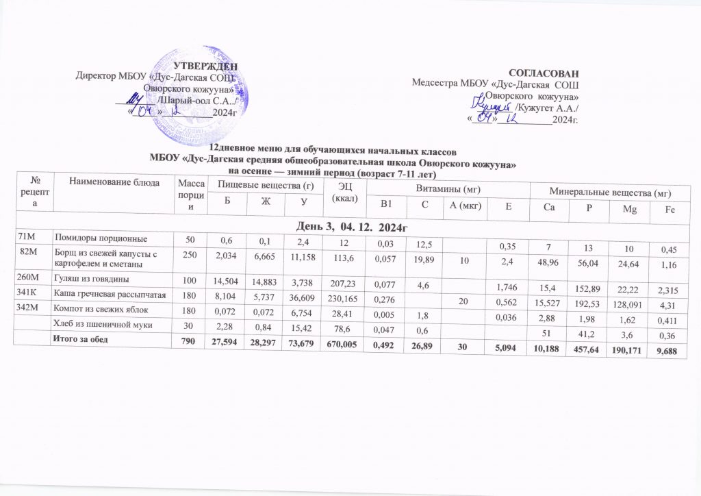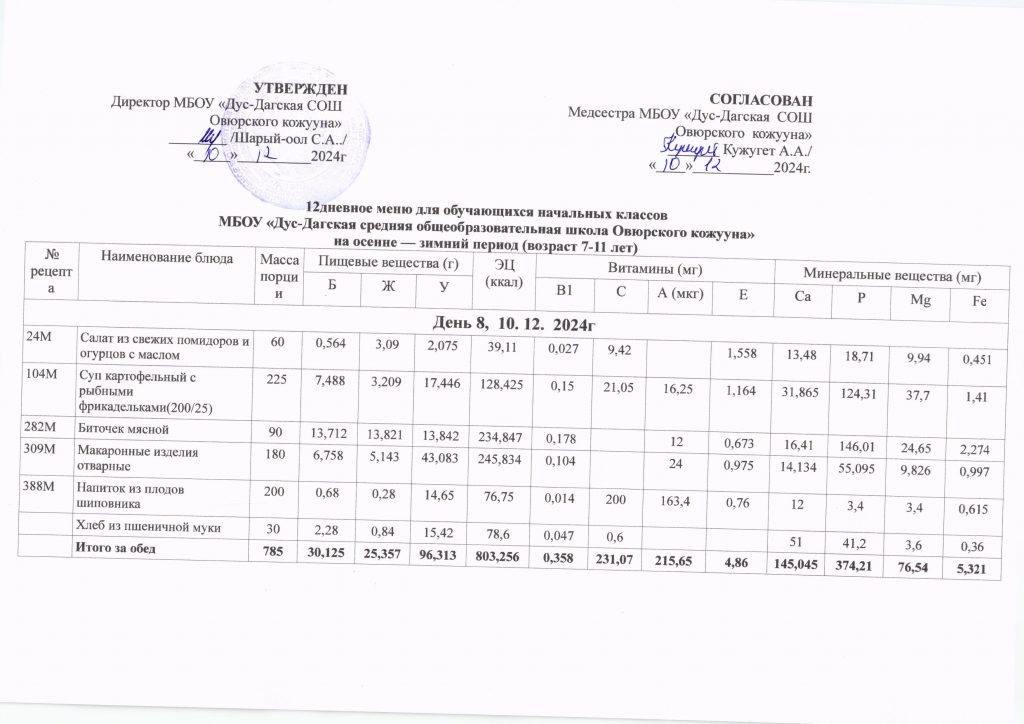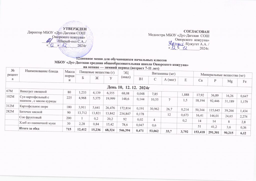 Двенадцатидневное меню за декабрь месяц 2024 год